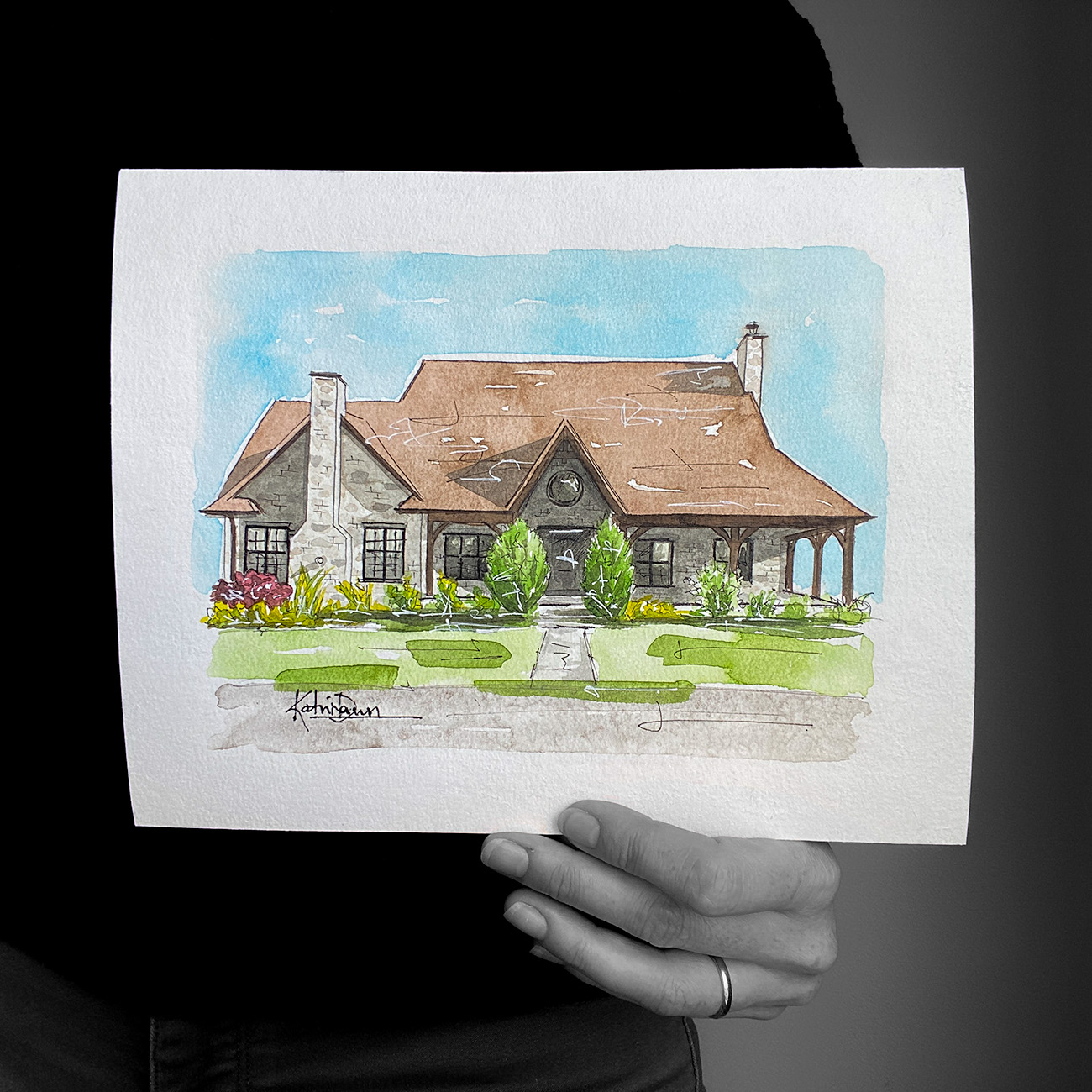 -- AmandaKatrina!!! It is absolutely PERFECT. I was surprised to find myself teary when I opened it up. It's my childhood home and where Eddie and I had our wedding reception and you just captured that cozy feeling I have about it perfectly. Thank you for sharing your talent with us.